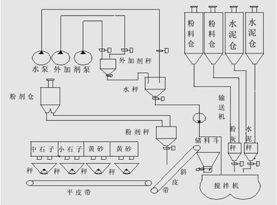混凝土自動(dòng)稱重配料系統(tǒng)工作流程如下圖所示