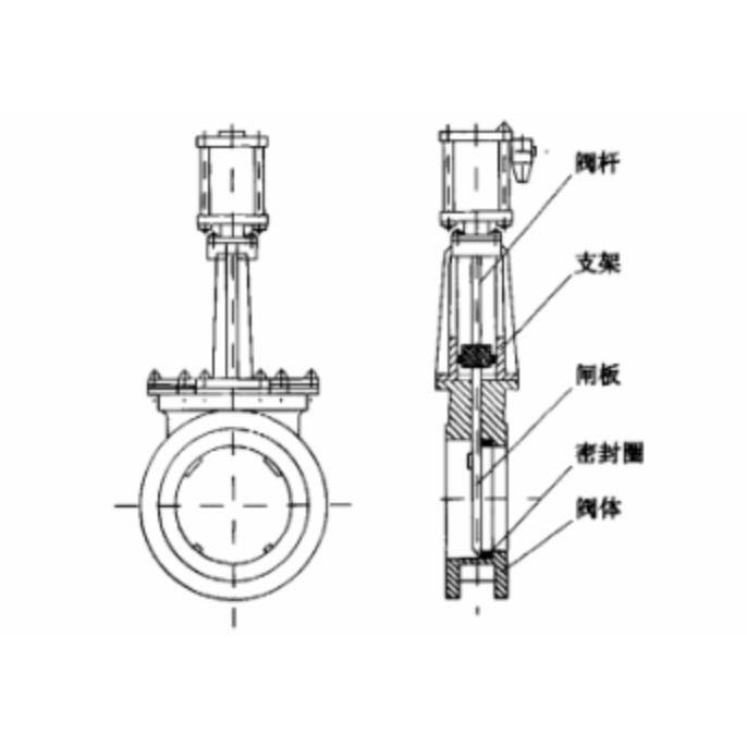 圖1 氣動刀型閘板閥的結(jié)構(gòu)