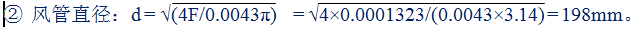① 風(fēng)管截面積:F = Q/(3600υ) = 16.67/(3600×35) = 0.0001323m2。