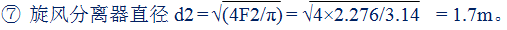 ⑥ 則旋風(fēng)分離器截面積為F2 = Q/8500 = 19350/8500 = 2.276m2。