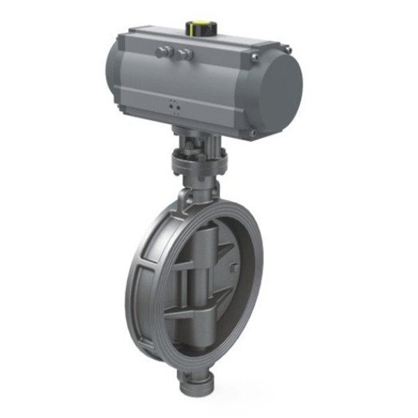 氣動對夾式蝶閥,結構新穎,閥體構造為滿足管道空間狹窄而形成的短距離對夾式結構,外部零泄漏,內部泄漏符合國家標準。