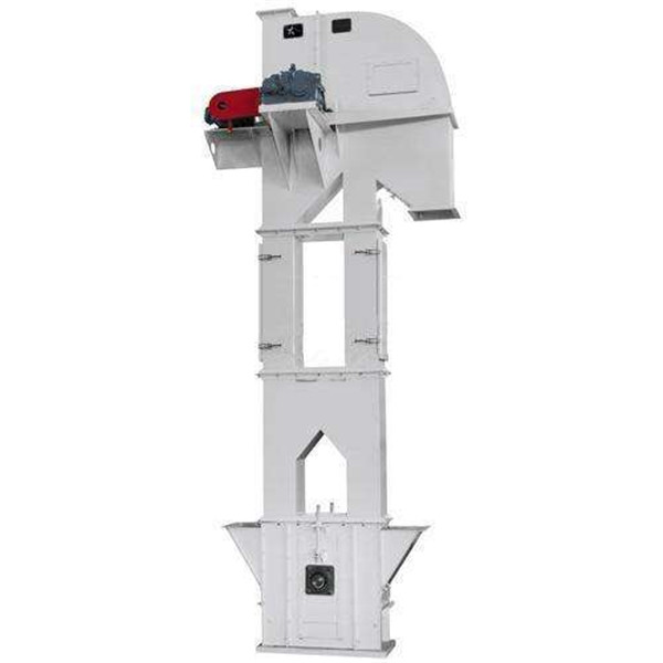 斗式提升機由料斗、驅動裝置、頂部和底部滾筒 (或鏈輪)、膠帶 (或牽引鏈條)、張緊裝置和機殼等組成。